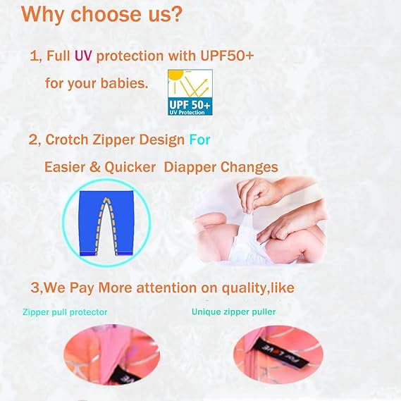 - Friendly Design–One piece long sleeves baby sunsuit offer body and bottom coverage. This swimsuit protects your child’s skin by blocking harmful UV rays. Get the baby sun swimsuit