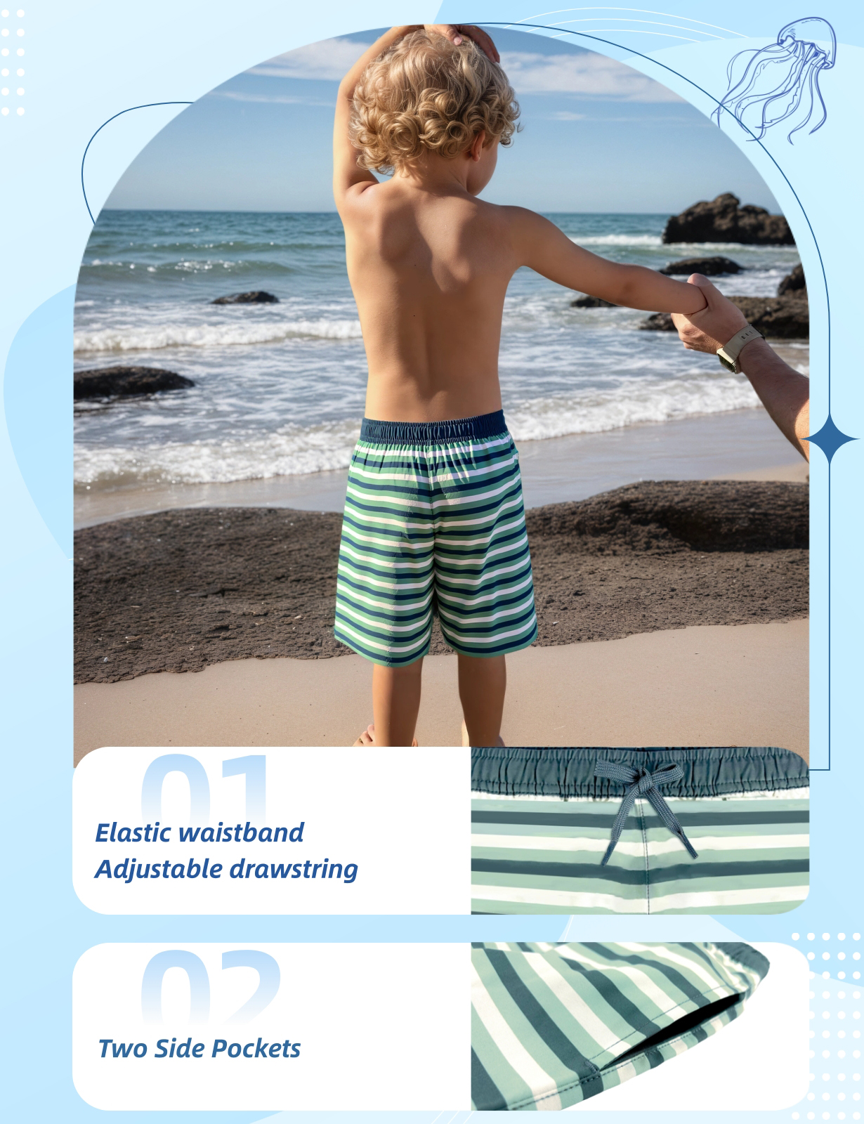 - Cute pattern make your boys looks more lovely, two side onseam mesh pockets provide enough storage