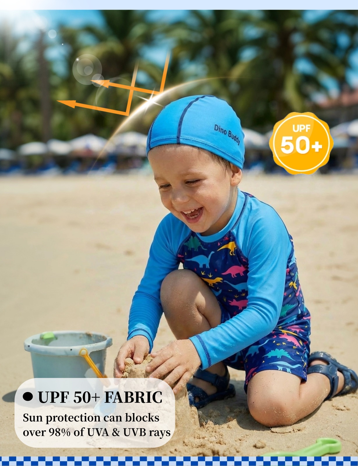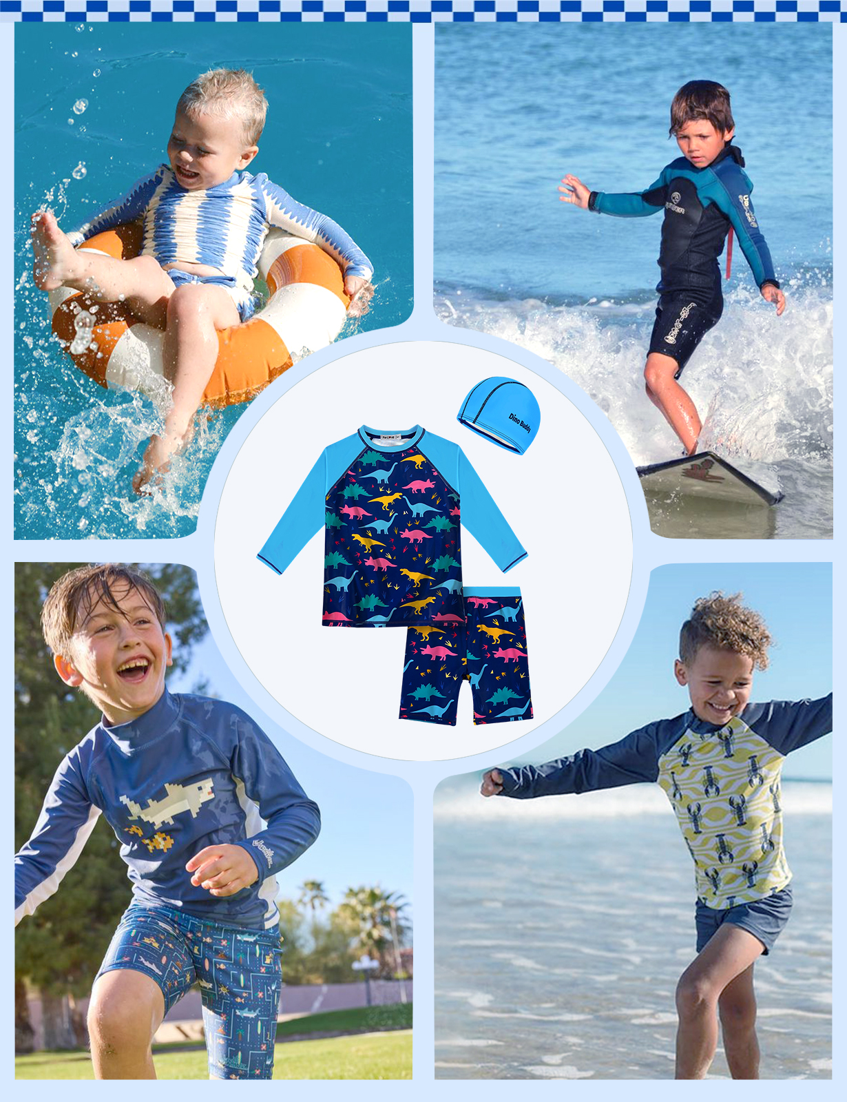 • Three-piece: This swimsuit set includes a short-sleeved T-shirts, swimming short, and a hat,  can block out most of the sun’s harmful UV radiation, protect your boy’s delicate skin, make sure your boy learns to swim without sunburn.