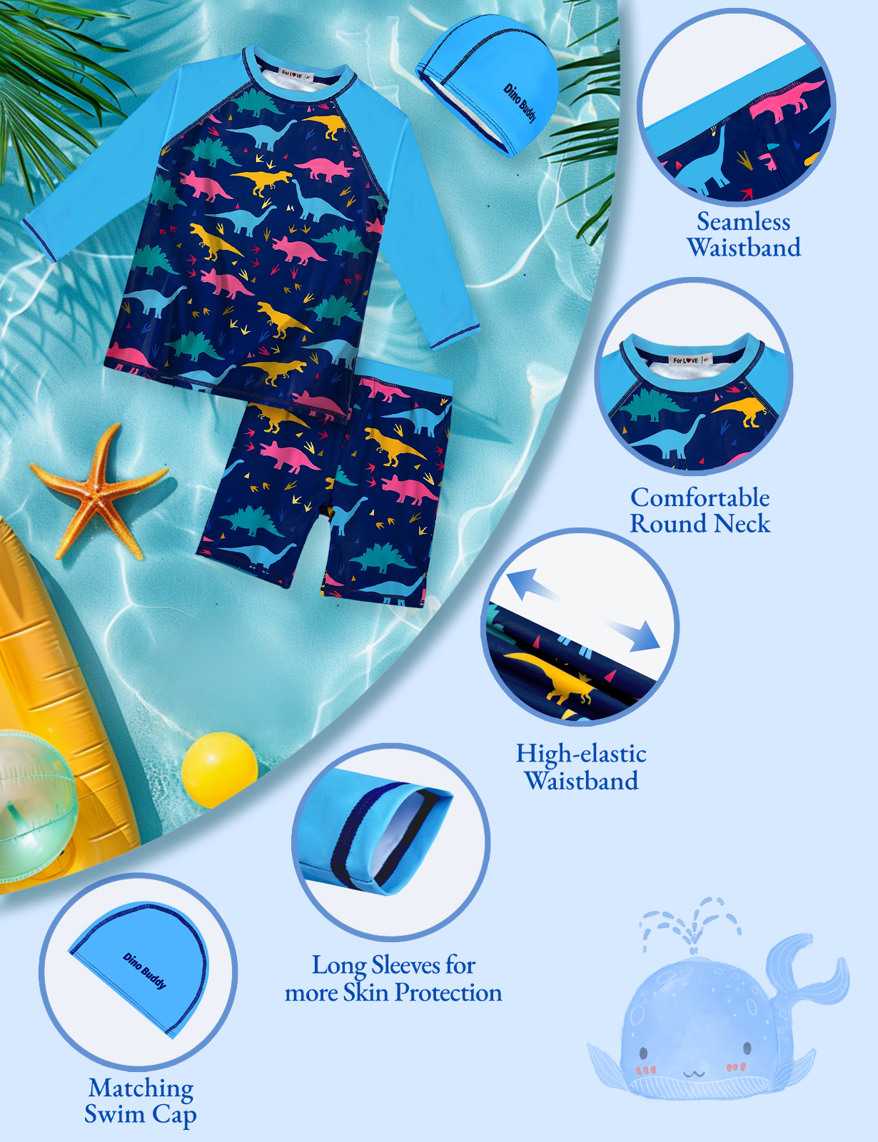 Toddler Bathing Suit Boy 3-Pieces Swimsuit Set Big Boy Swimwear with Hat UPF 50+ Rash Guards