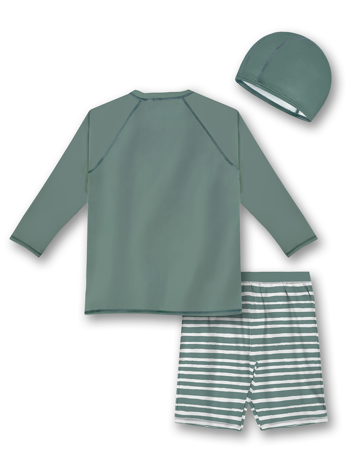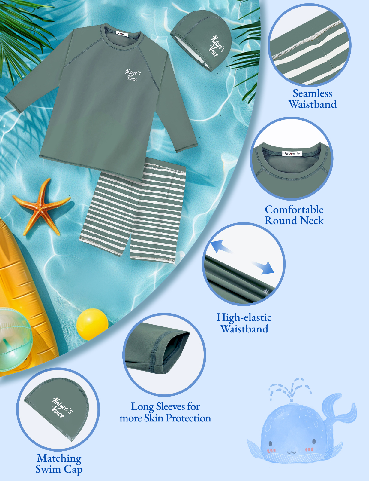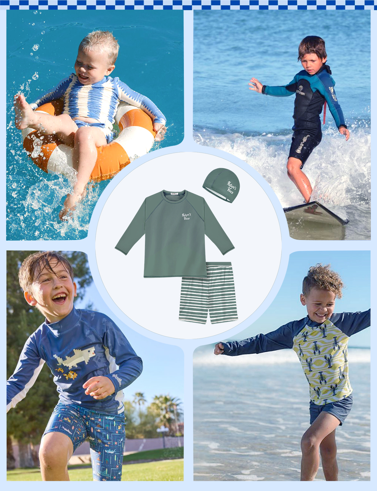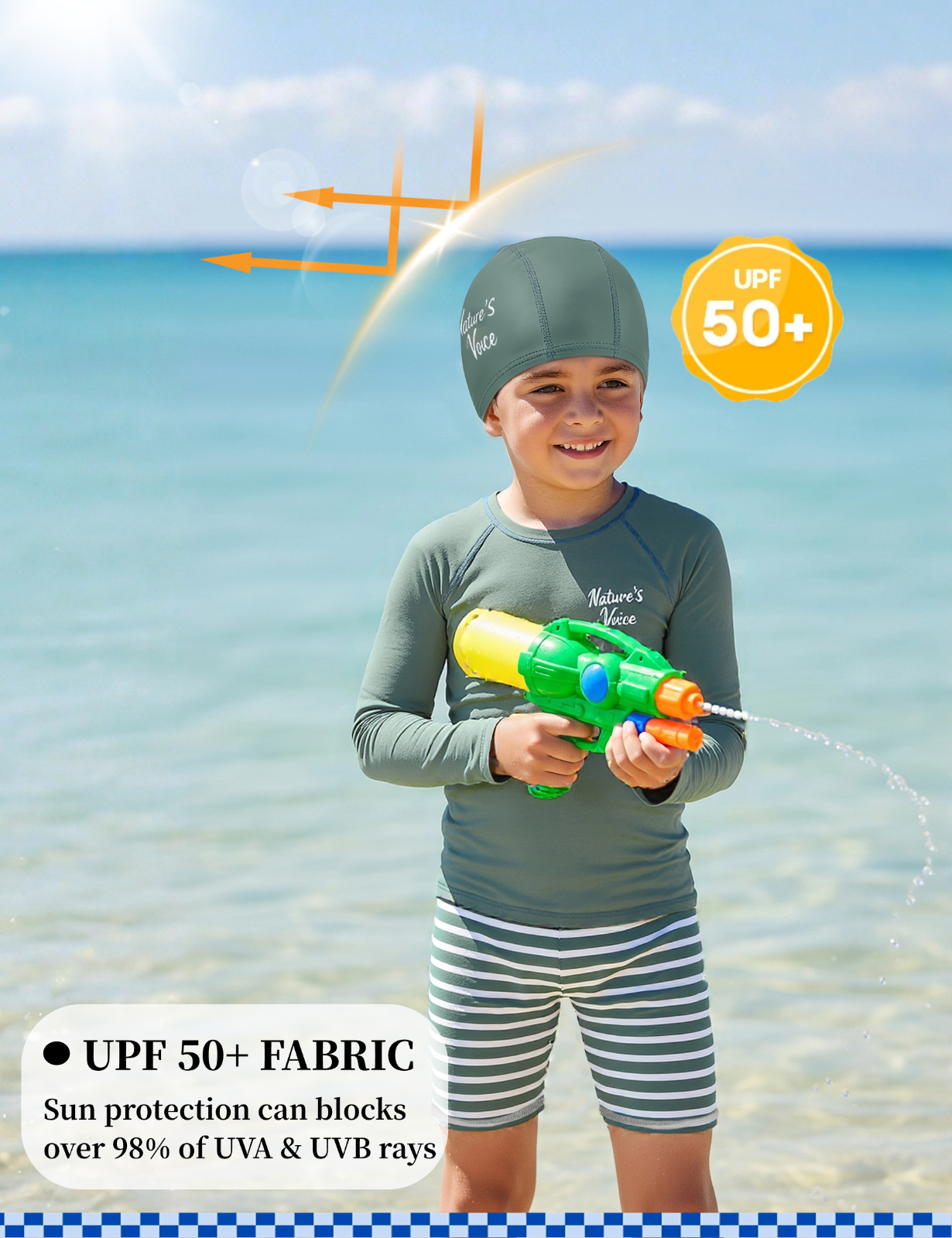 • Three-piece: This swimsuit set includes a short-sleeved T-shirts, swimming short, and a hat,  can block out most of the sun’s harmful UV radiation, protect your boy’s delicate skin, make sure your boy learns to swim without sunburn.